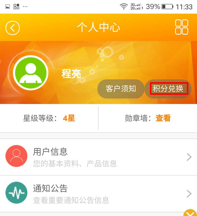 进入个人中心后,点击积分兑换: