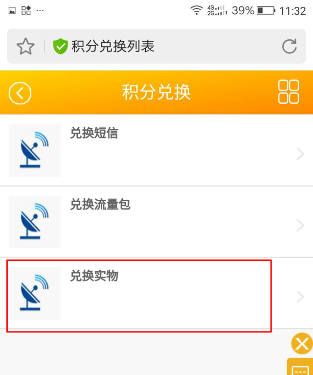 进入积分兑换后,看到兑换实物菜单点击: